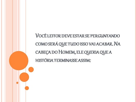 O Homem ficou perplexo diante daquela situação. Sem saber o que pensar ou dizer, forçou um sorriso, fez um comentário qualquer e saiu da sala o mais rápido que pode.