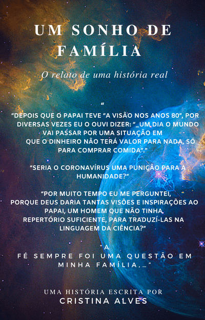 “_A minha intenção com o livro UM SONHO DE FAMÍLIA, é propor uma reflexão sobre questões que as famílias tratam como tabu, e que merecem serem observadas, analisadas e colocadas em pauta nas conversas famíliares. Só assim, poderemos ampliar a percepção, e lidar com os mistérios da vida, com a naturalidade e a espiritualidade que cabe a todo ser humano.”